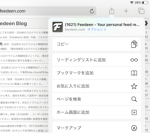 iOS では、Safariの共有シートにある「ホーム画面に追加」でインストールします。少し手順がわかりづらいので、インストール手順を動画にしました。