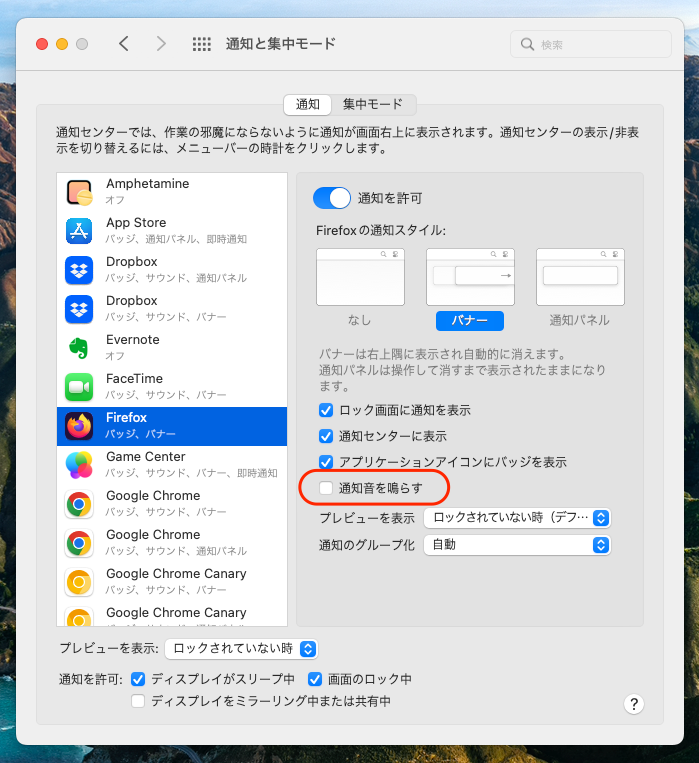macOS 版 Firefox で通知音を止めたい