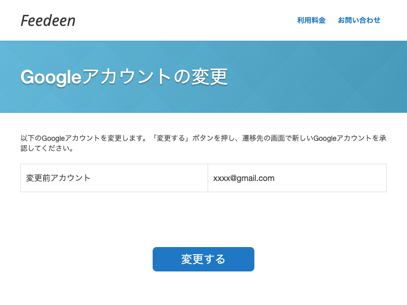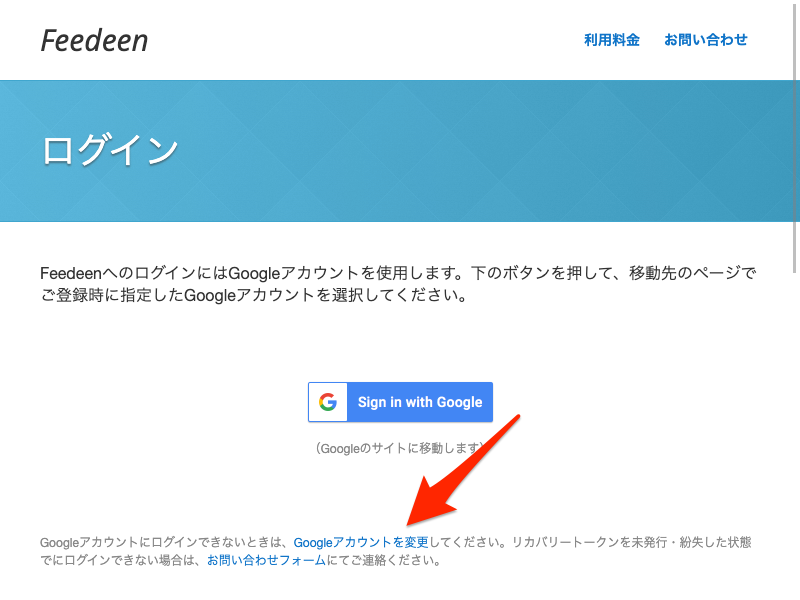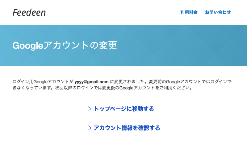 ログインした状態になっていますので、トップページに移動すればそのままFeedmoonをご利用いただけます。これ以降にログインする必要があるときは、変更後のGoogleアカウントを使用してください。