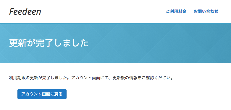 新規ご登録時に付与される無料期間の終了後も Feedmoon を継続してご利用になるには、利用期限の更新と利用料金のお支払いが必要となります。このページでは、そのお手続き方法をご説明しています。